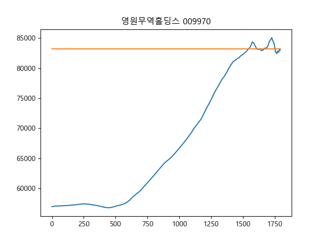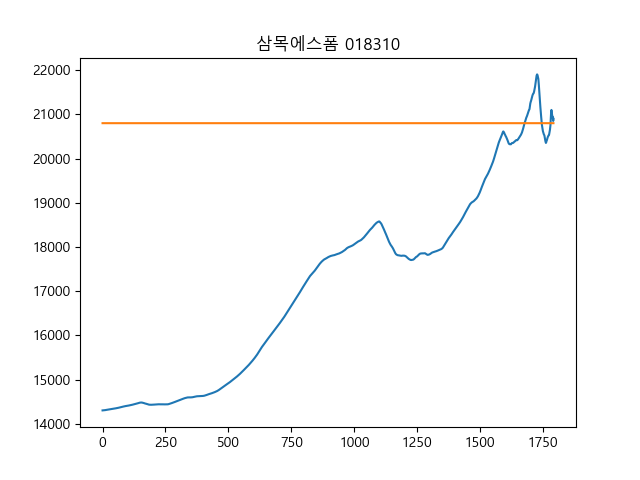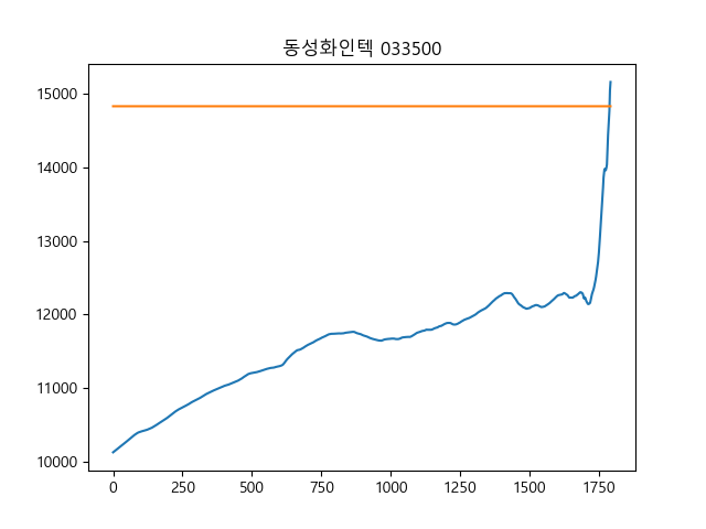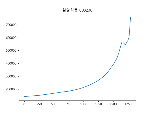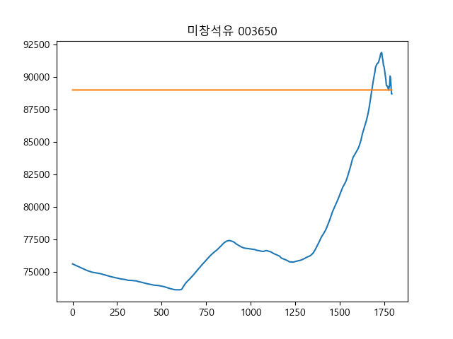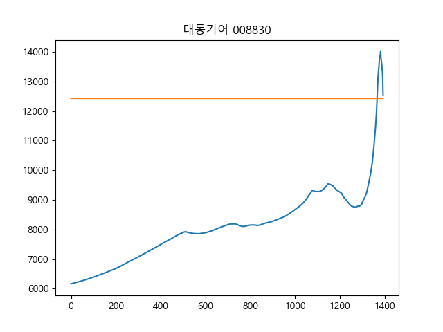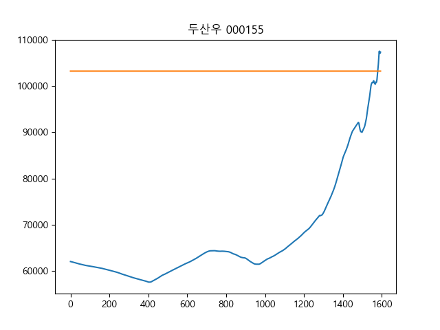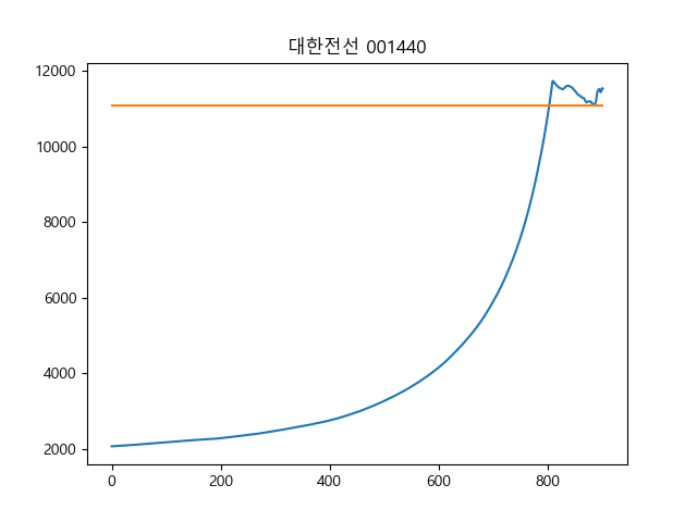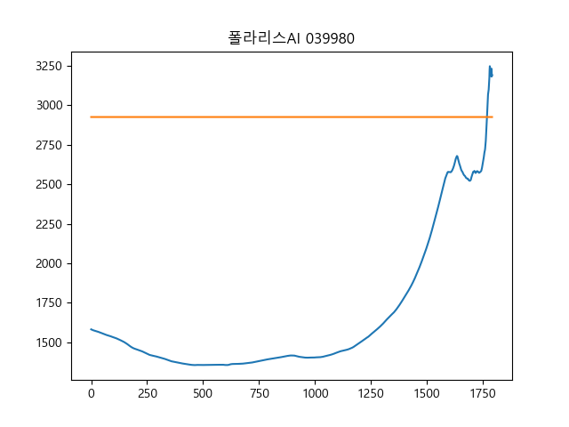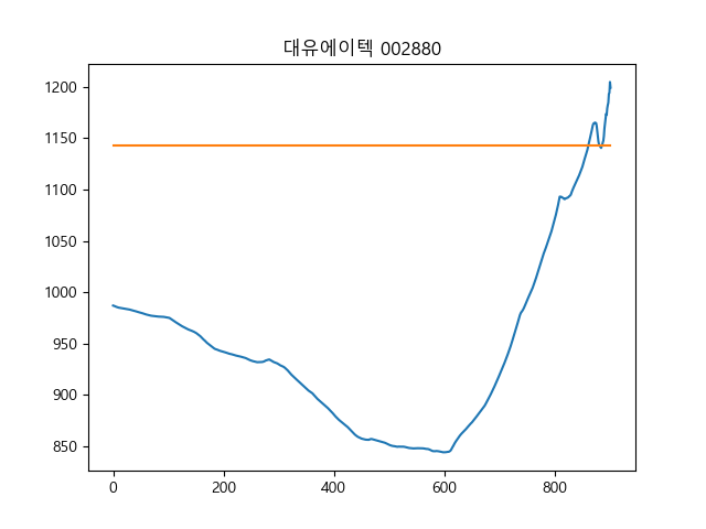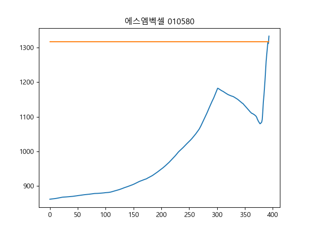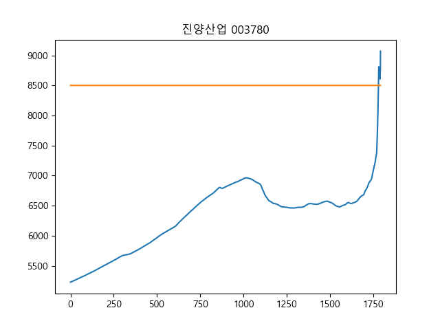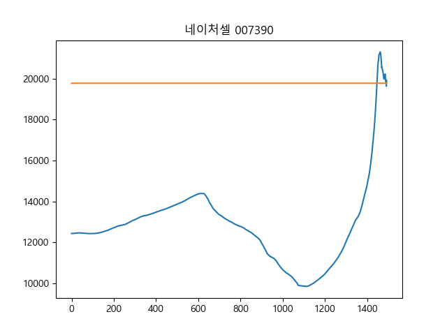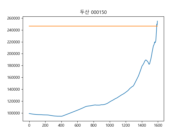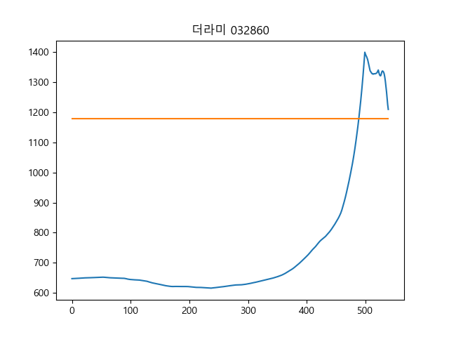그런 종목들만의 그래프를 나열하였다. (X축은 거래일이며 Y축은 평균 매수 가격(저가 매수 가정))