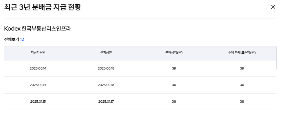 그 중에서도 월 중 배당이며 변동성이 작은 ETF를 찾은 것이 KODEX 한국 부동산리츠인프라이다.
