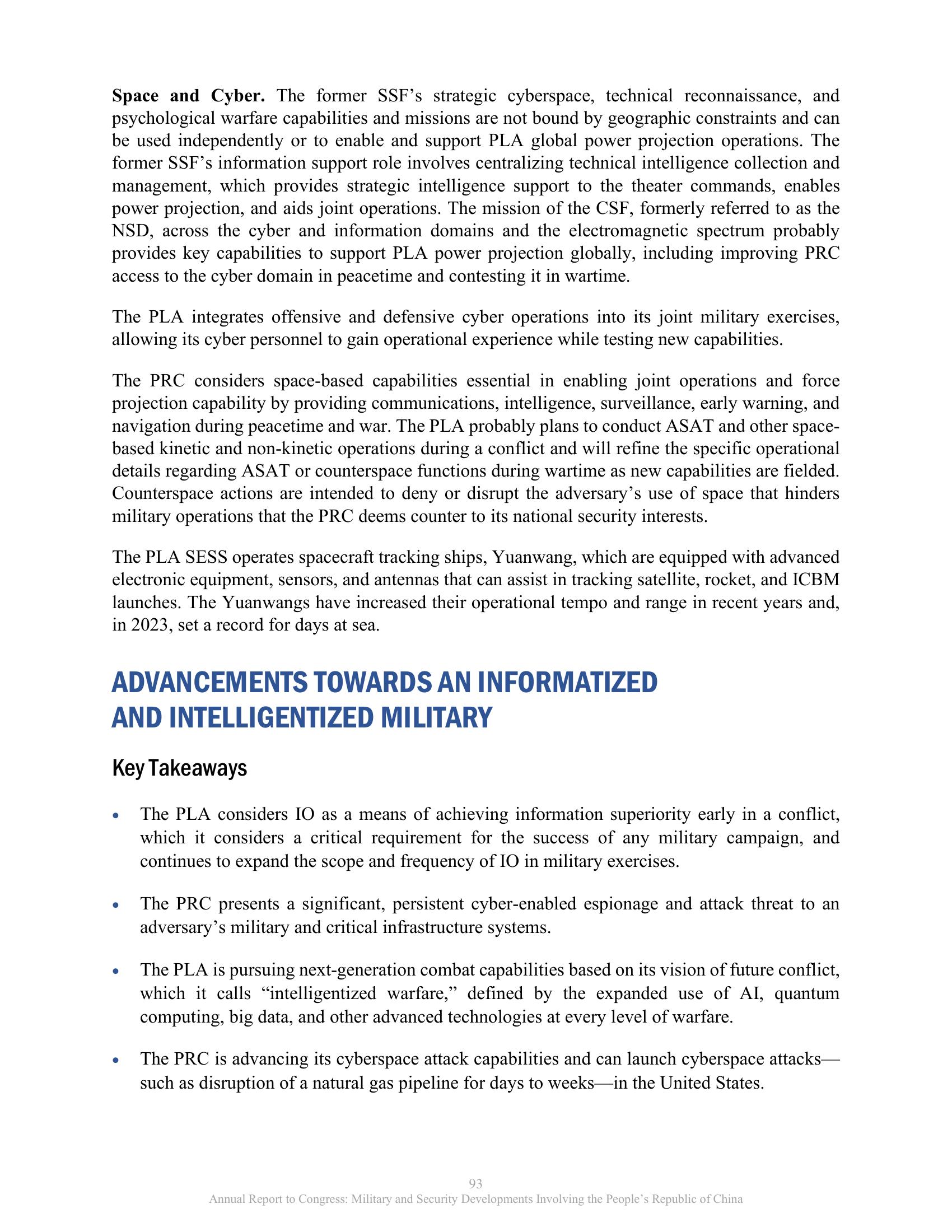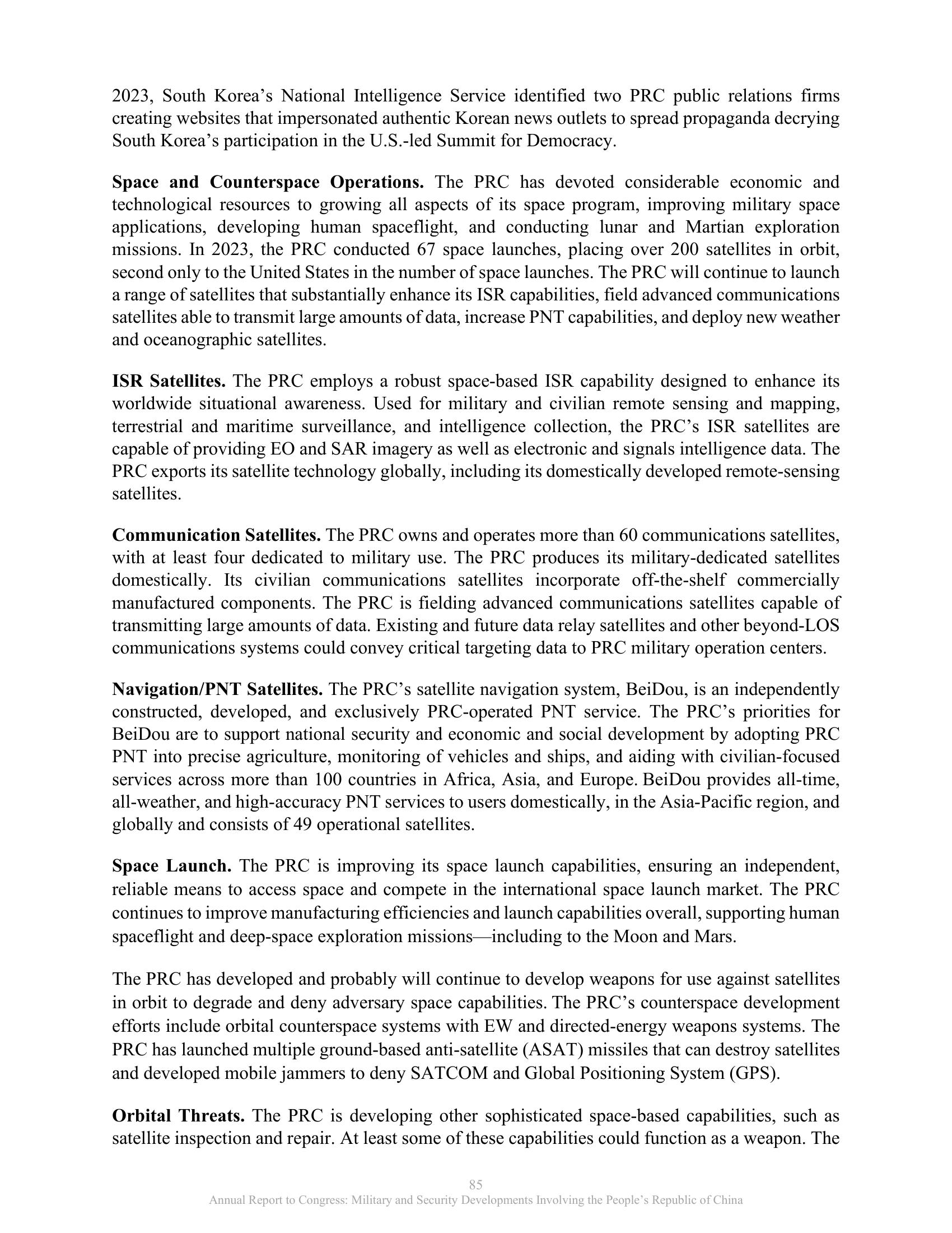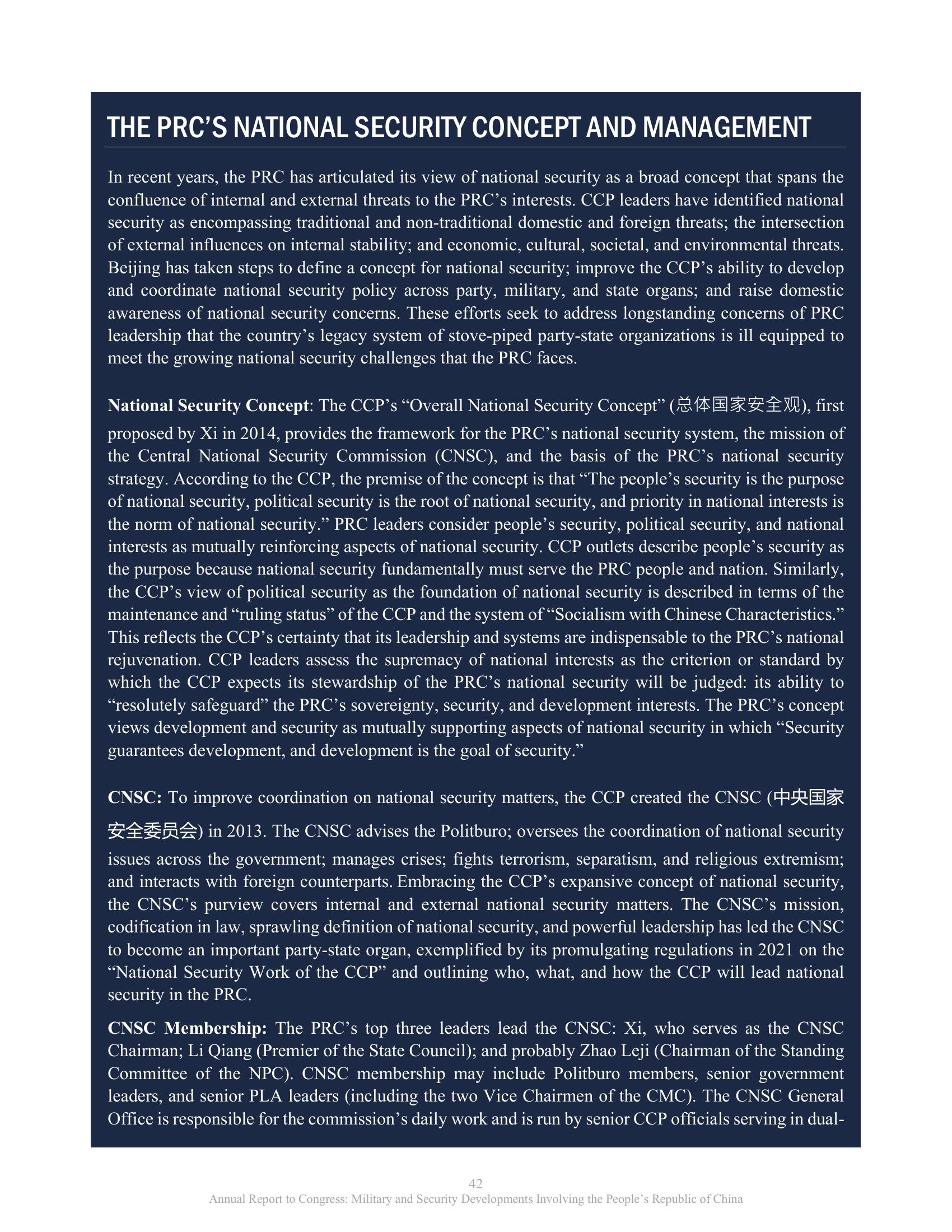 국방부의 연례 보고서인 **『중화인민공화국 관련 군사 및 안보 동향』**은 PRC의 국가 전략, 경제 전략, 군사 전략의 흐름을 분석하고, **중국인민해방군(PLA)**의 전략, 현재 역량과 활동, 향후 현대화 목표에 대한 통찰을 제공합니다.