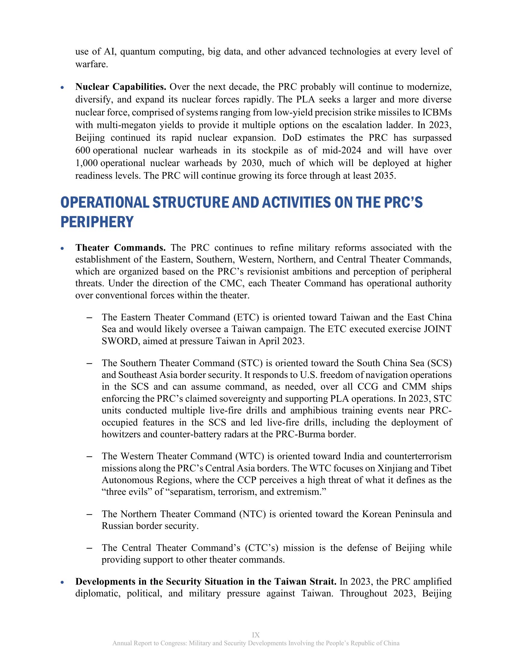 보고서 범위: 이 보고서는 2024년 초까지의 PRC 관련 안보 및 군사 동향을 다루고 있습니다.