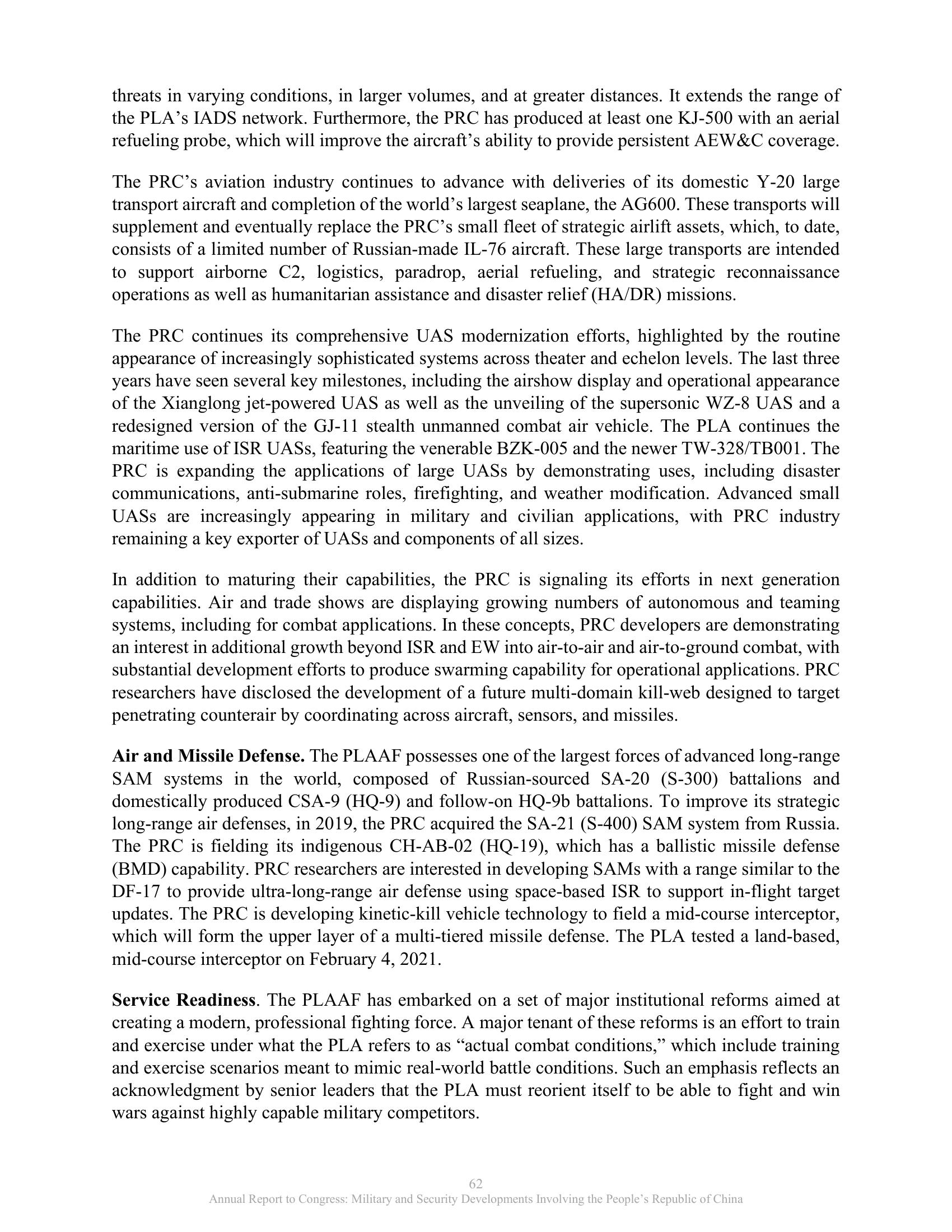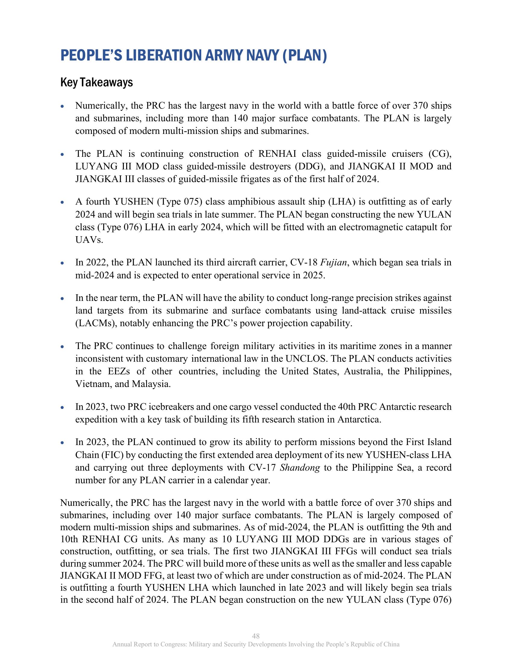 이 보고서는 점점 더 강력해지는 PRC 군사력이라는 ‘기준 도전’에 대응하는 것의 중요성을 보여줍니다.
